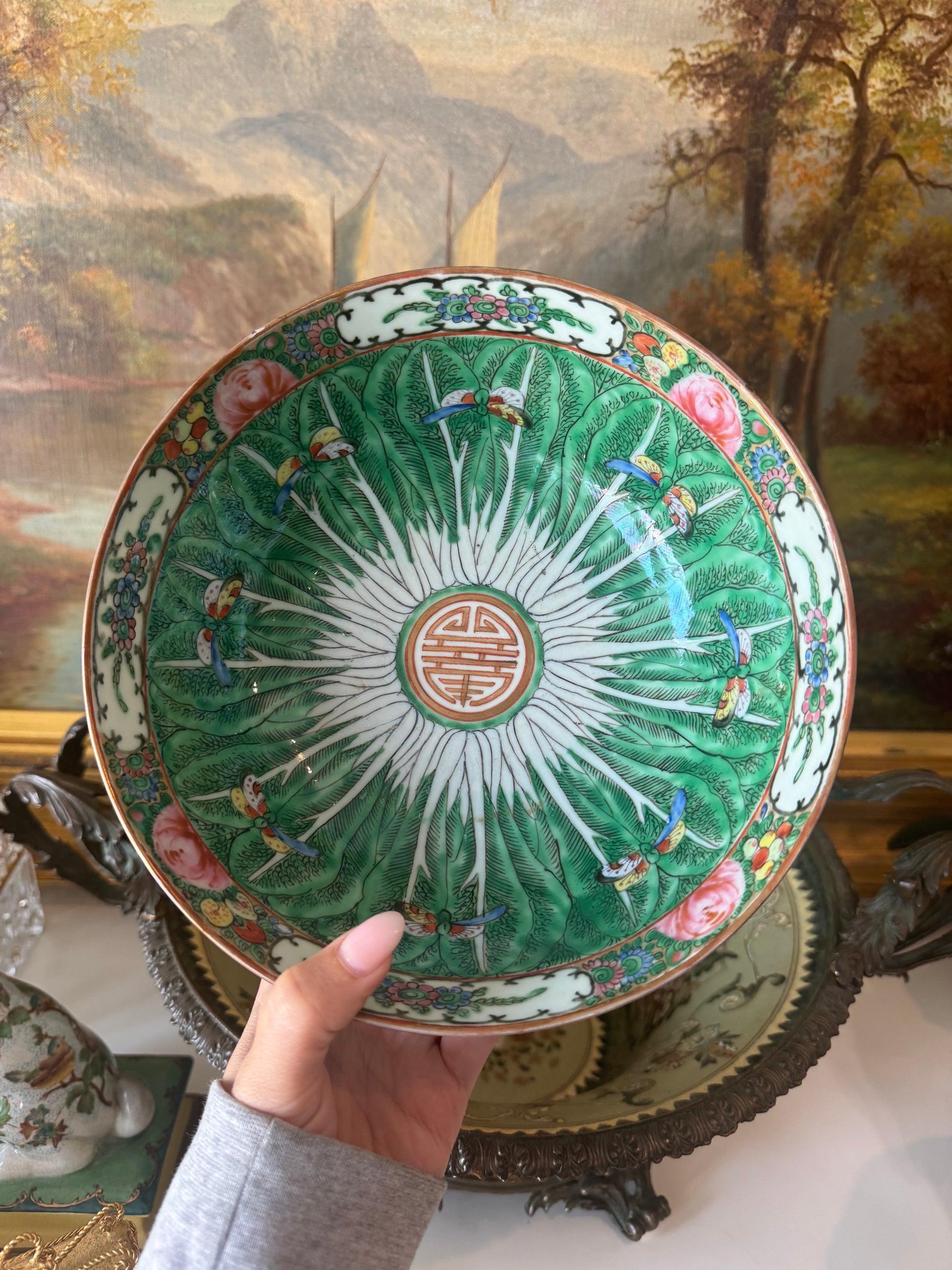 Beautiful Antique Bok Choy Cabbage Bowl with Rose Medallion Details.