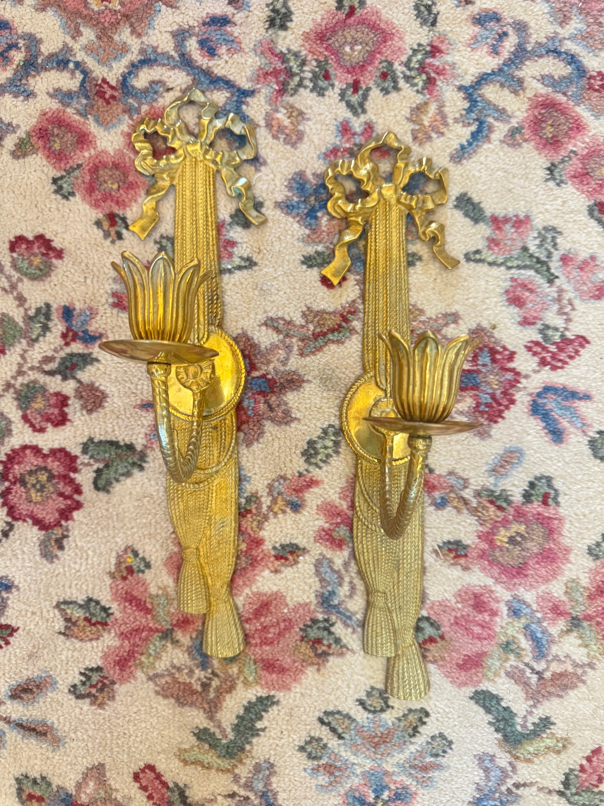 Overview: The perfect pair of bow wall sconces. Displayed by Love Shack Fancy. One-Arm sconces.