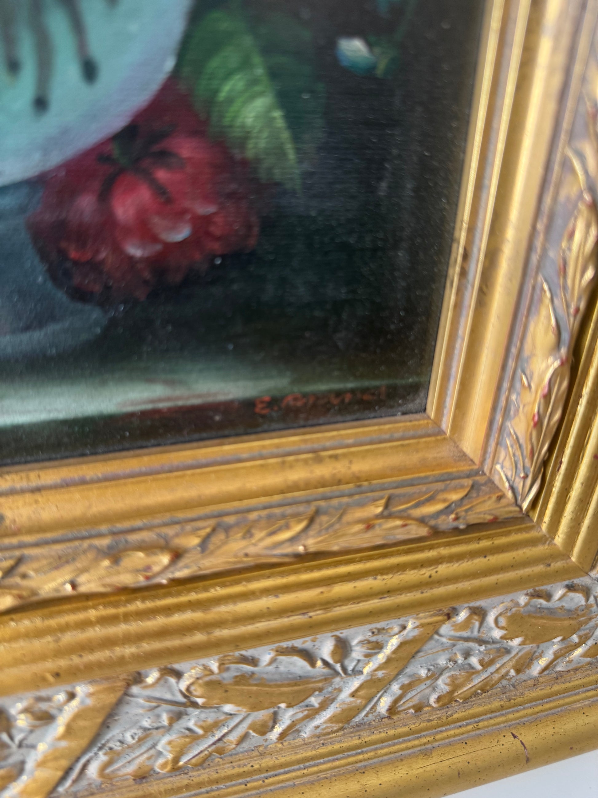 Overview: Lovely floral oil on canvas painting signed by "E. Brands".