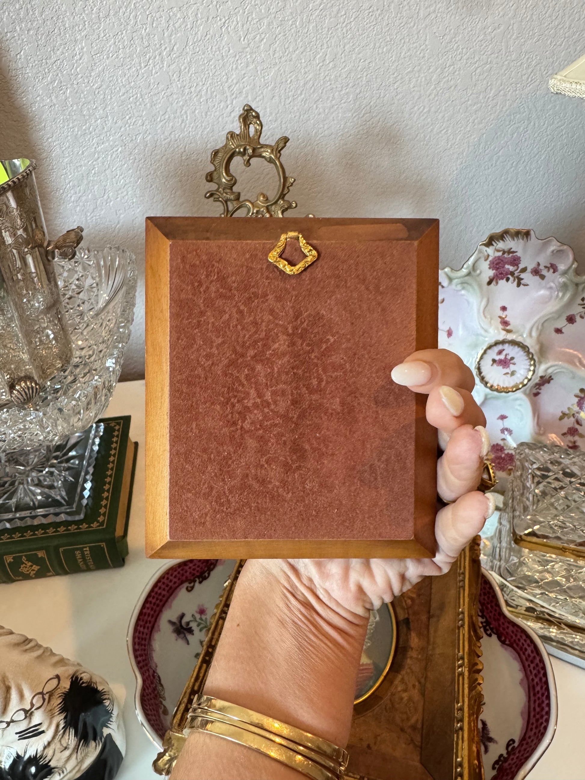 Overview: Lovely signed miniature portrait of Queen Marie Antoinette with enamel over-glazed decoration to replicate lace - antique and beautifully done.