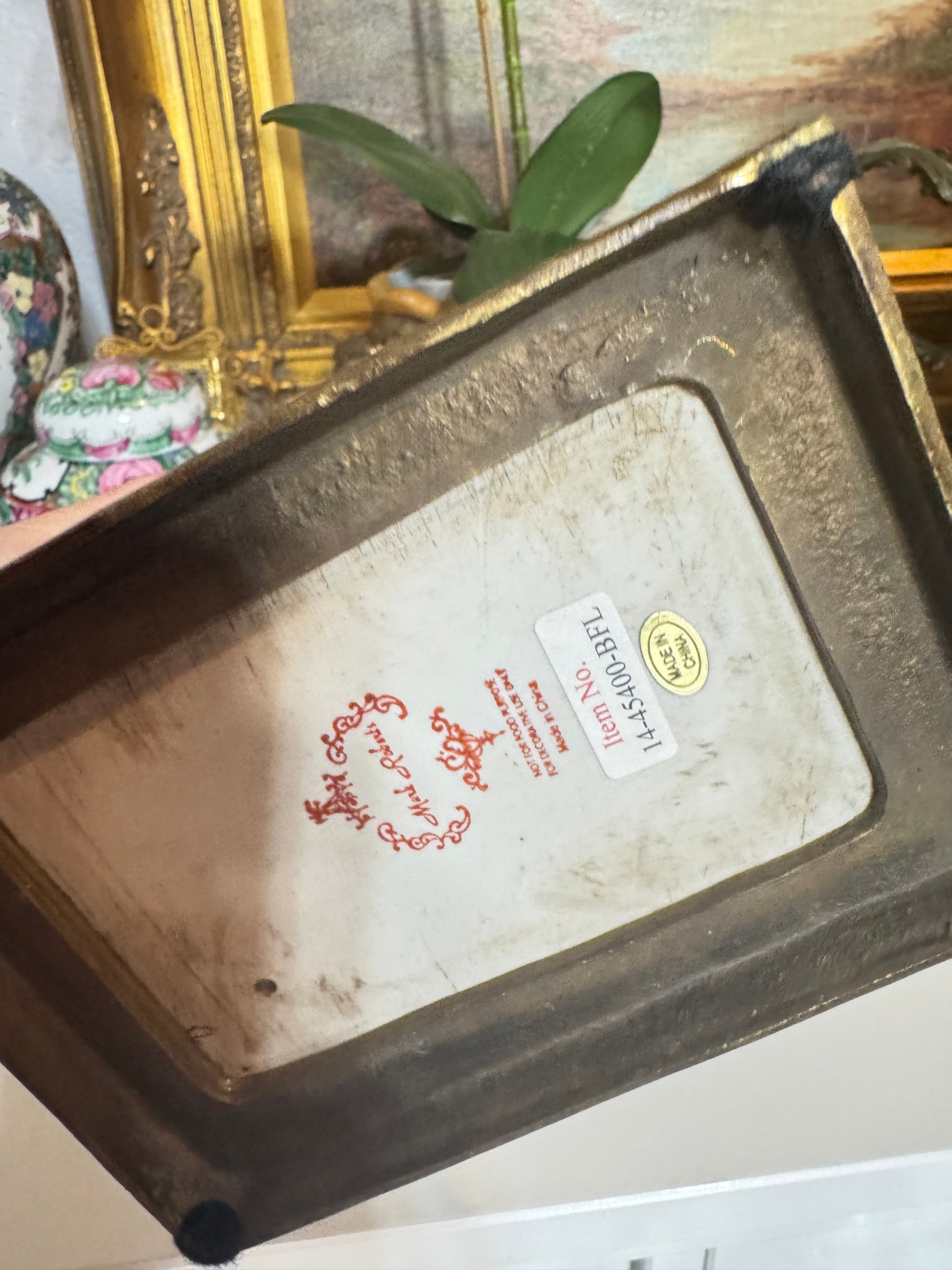 Beautiful pair of pug or bulldog bookends with hand-painted floral detail, pink noses, and a brass base! Made by Mark Roberts, a luxury home decor brand. Excellent pre-owned condition. Dimensions: 8”
